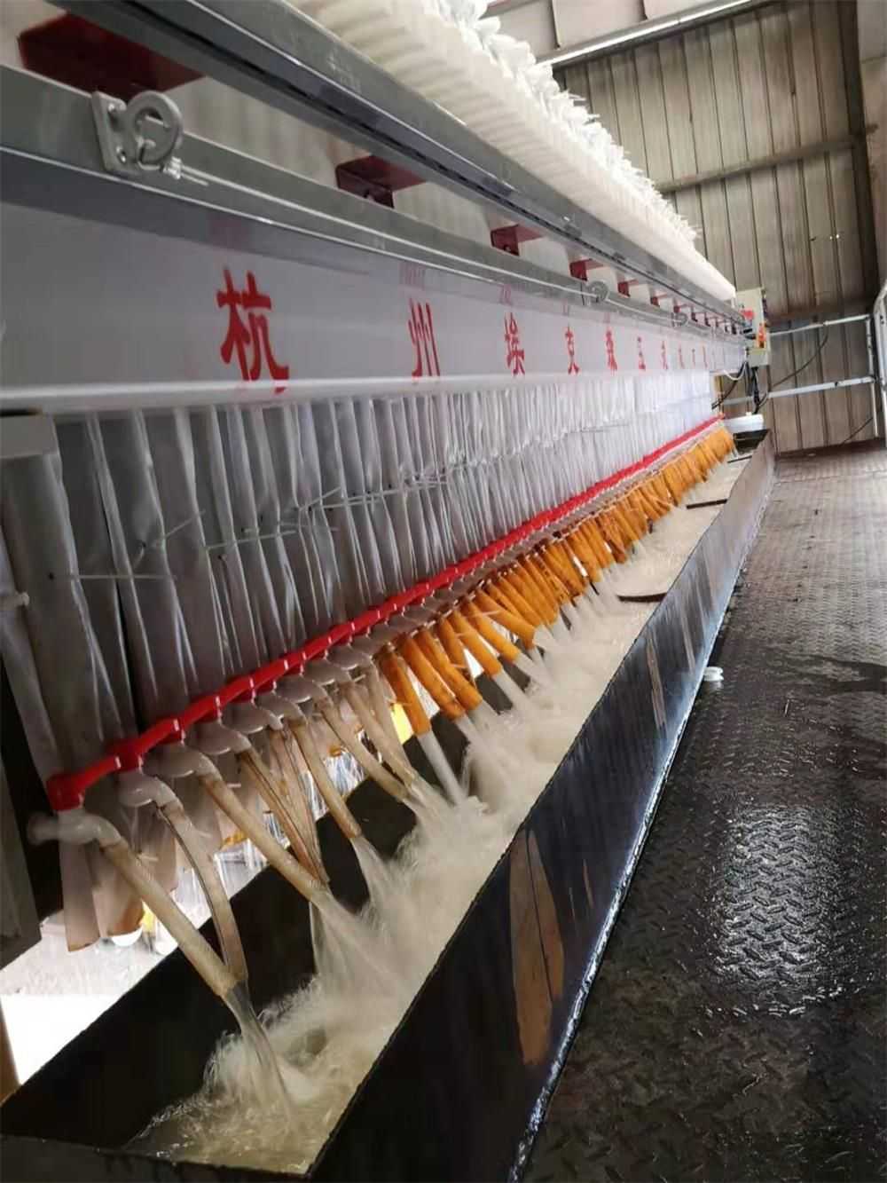 全自動(dòng)廂式壓濾機(jī)與普通廂式壓濾機(jī)的不同之處在于多了自動(dòng)拉板系統(tǒng),自動(dòng)接液翻板,自動(dòng)清洗濾布等系統(tǒng)。使設(shè)備操作更加智能化自動(dòng)化。整機(jī)結(jié)構(gòu)設(shè)計(jì)科學(xué)合理,機(jī)械強(qiáng)度高、結(jié)構(gòu)穩(wěn)固、經(jīng)久耐用并且便于操作和維護(hù)。