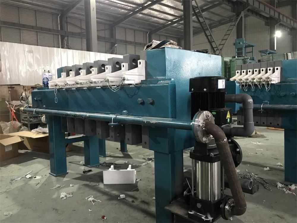 泵機(jī)一體式板框壓濾機(jī),是進(jìn)料泵和壓濾機(jī)直接管道連接好的便捷壓濾機(jī)。優(yōu)點(diǎn)是客戶安裝方便,節(jié)省現(xiàn)場(chǎng)空間,過濾速度快、泥餅含水率低。